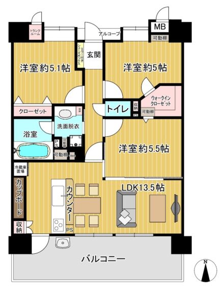 | 間取内容 | LDK13.5帖 洋室5.5帖 洋室5.1帖 洋室5.0帖 | ||